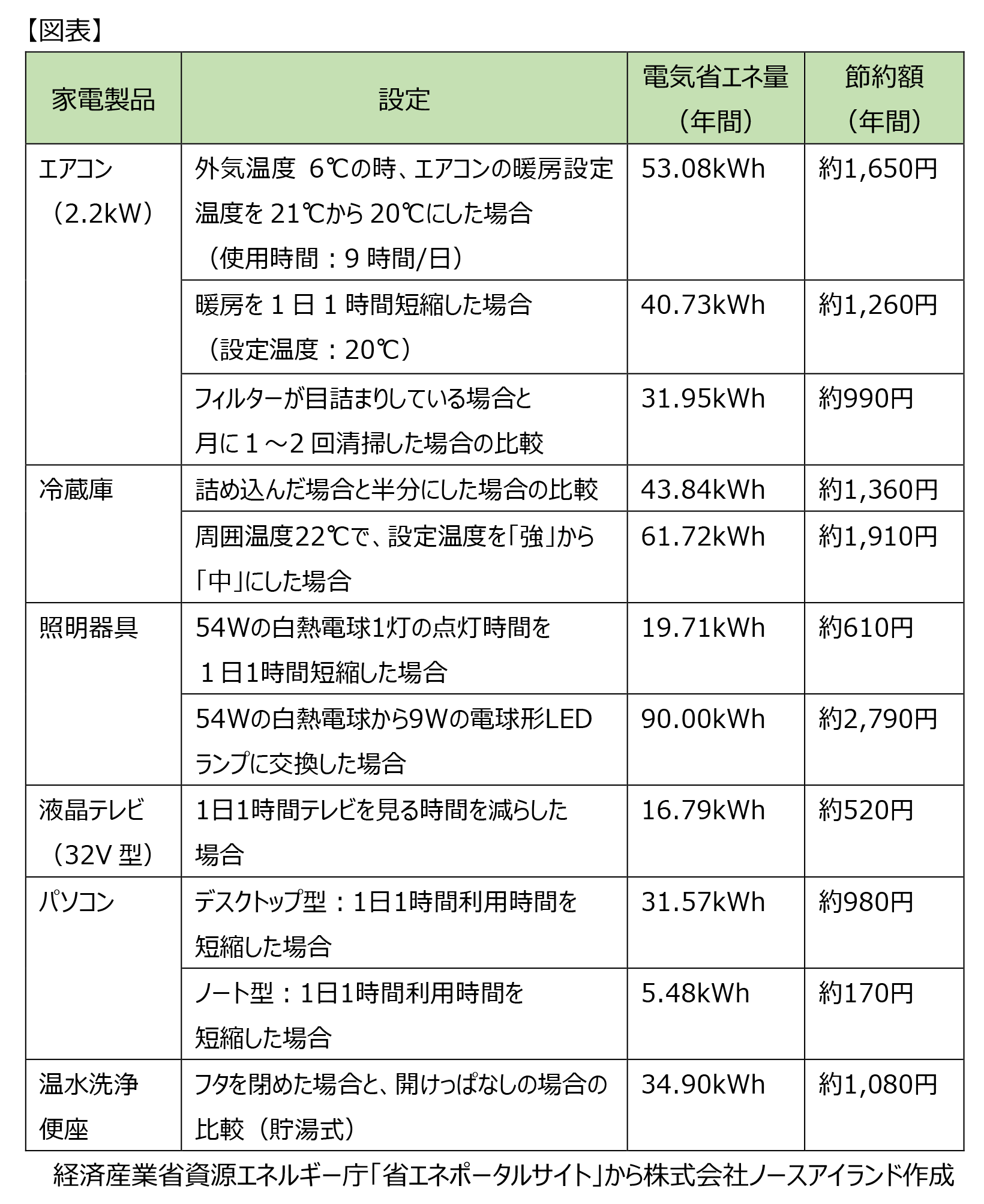 ②経済産業省資源エネルギー庁「家庭でできる省エネ」