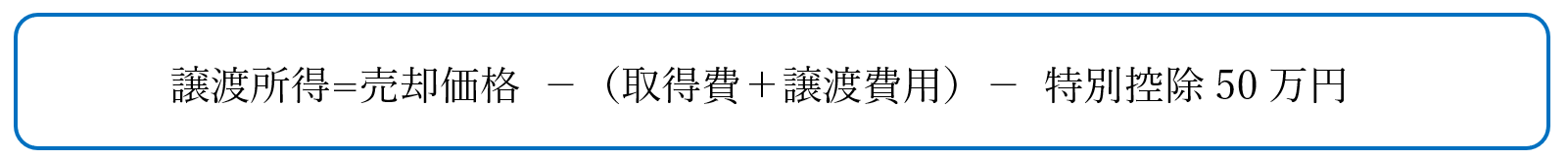 ただし、計算式の最後にあるように、譲渡所得には「特別控除の50万円」が存在します。
