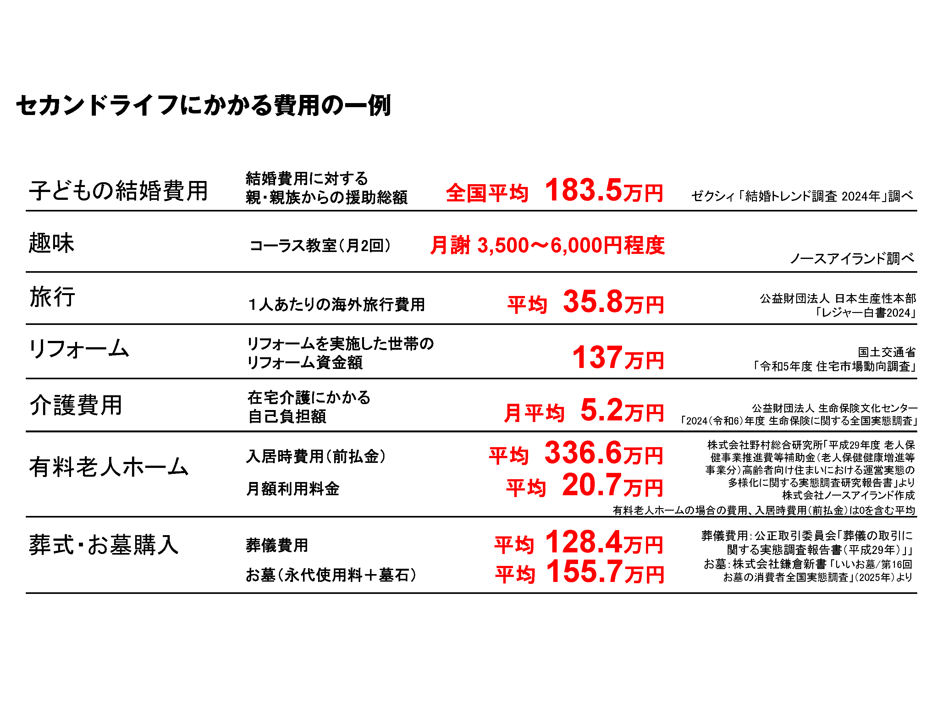ゆとりあるセカンドライフを送るために、老後の日常生活費として最低限必要と考えられる金額(最低日常生活費)は平均23万円となっています。さらに、「最低日常生活費」と「ゆとりのための上乗せ額」を合計した「ゆとりある老後生活費」は平均で約38万円と言われています。ゆとりのための上乗せ額を使途別にみると、「旅行やレジャー」がもっとも高く、以下「日常生活費の充実」「趣味や教養」と続いています。
